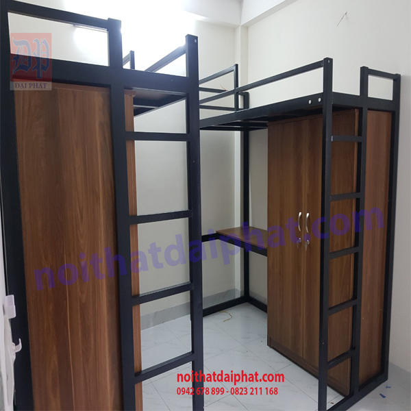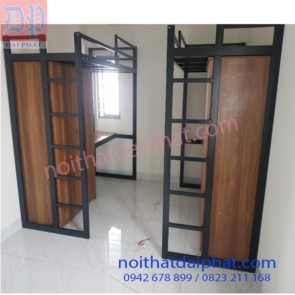 Mô tả: Giường sắt kèm tủ và bàn học, sơn tĩnh điện màu đen, gỗ MDF
